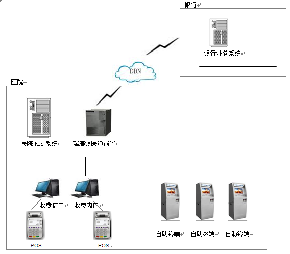 為了滿(mǎn)足各大醫(yī)院日益增長(zhǎng)的繳費(fèi)需求,緩解醫(yī)院排隊(duì)繳費(fèi)困境,南京瑞康資訊有限公司提出銀醫(yī)通系統(tǒng)的解決方案,在本方案中銀醫(yī)通包括兩個(gè)部分,一部分是窗口銀行卡收費(fèi),一部分是自助終端銀行卡支付。